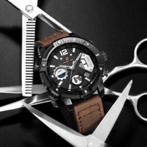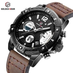 Golden Hour Black Dark-brown leather Luxury Men Watch